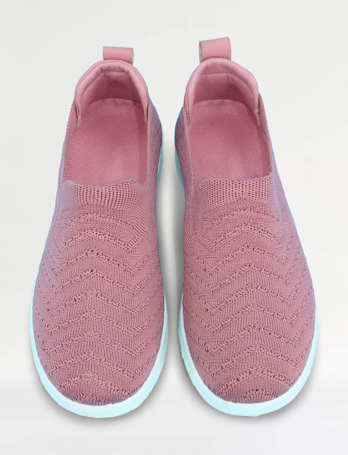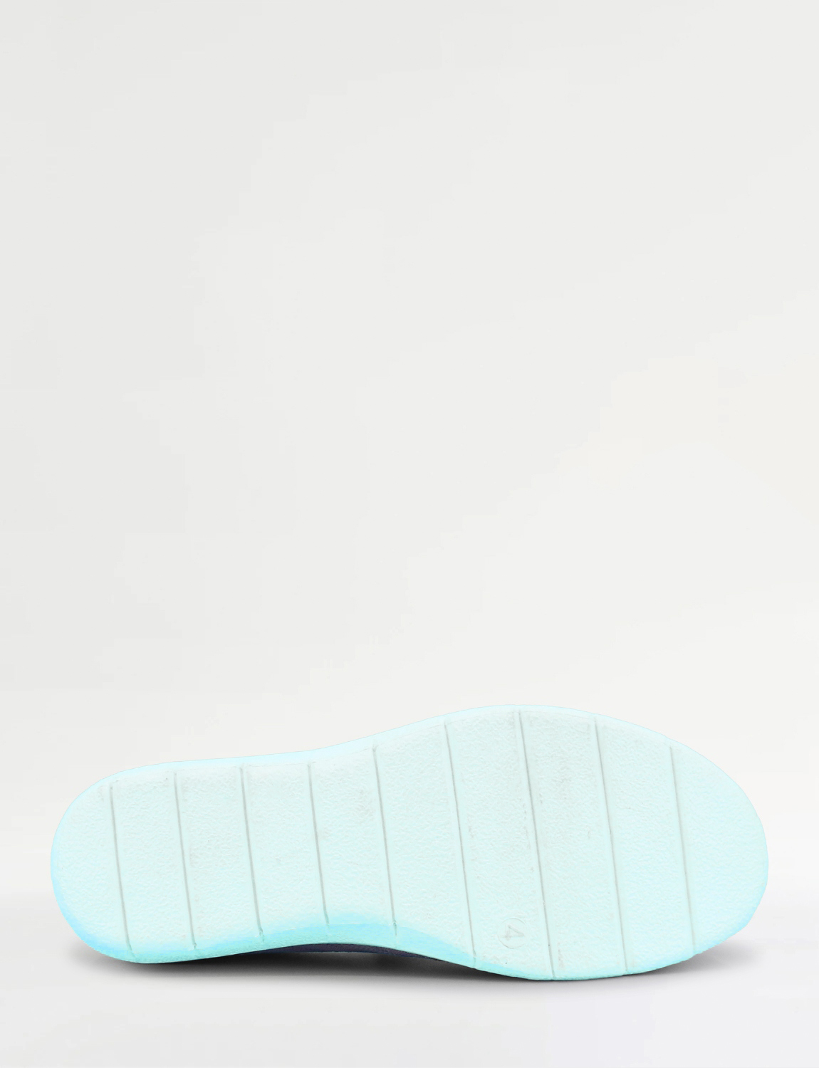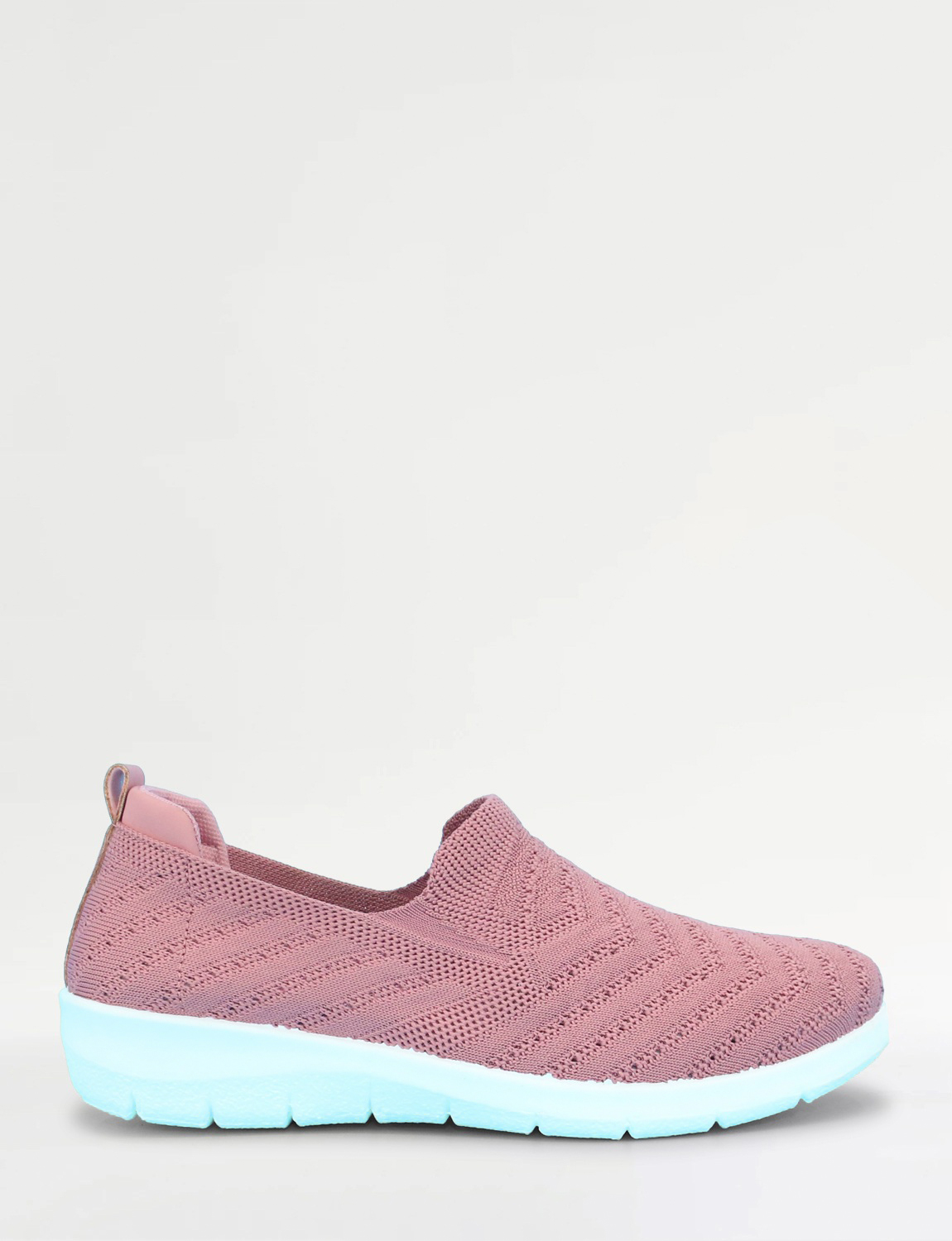 Wide E-fitting slip-on shoe in textured knit fabric with good foot coverage and padded in-sock. Flexisole. Perfect for the spring/summer months.