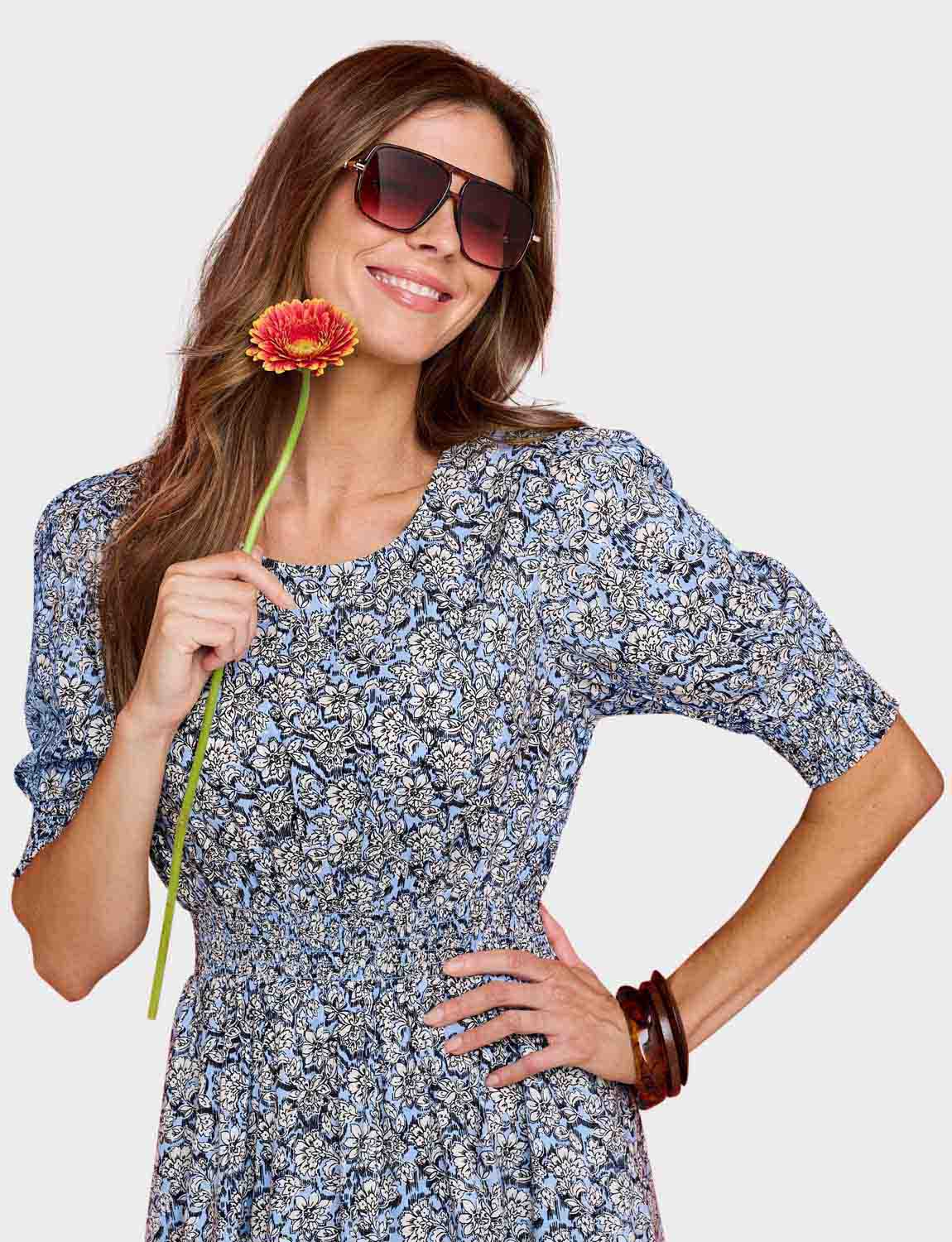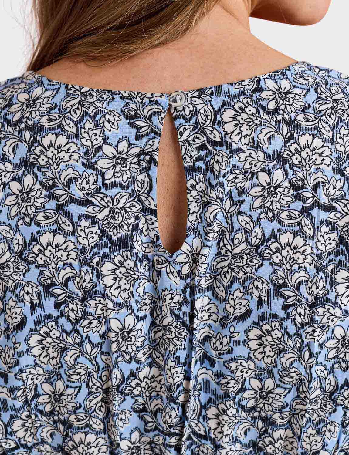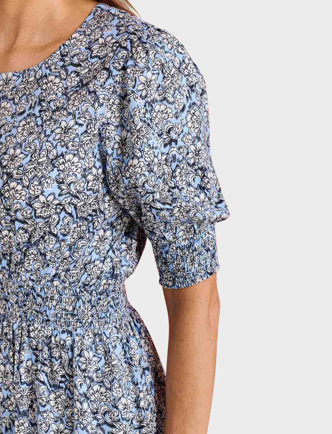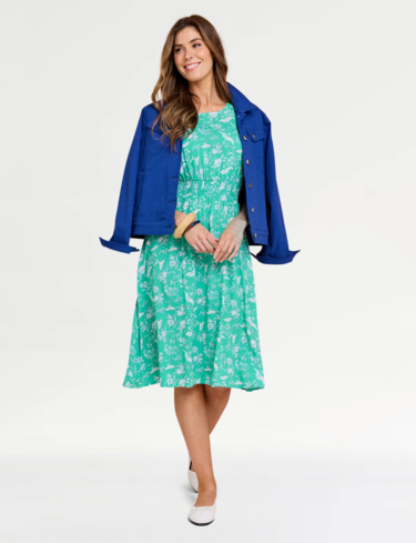 For ultimate comfort, this dress offers an elasticated smock waistline and cuffs so you can feel good all day long. Fastened with a simple button and loop at the back of the neck, it’s easy to take on and off, and looks fantastic. The dress finishes below the knees, with the sleeves coming to just above the elbows - perfect for a refreshing summer look.