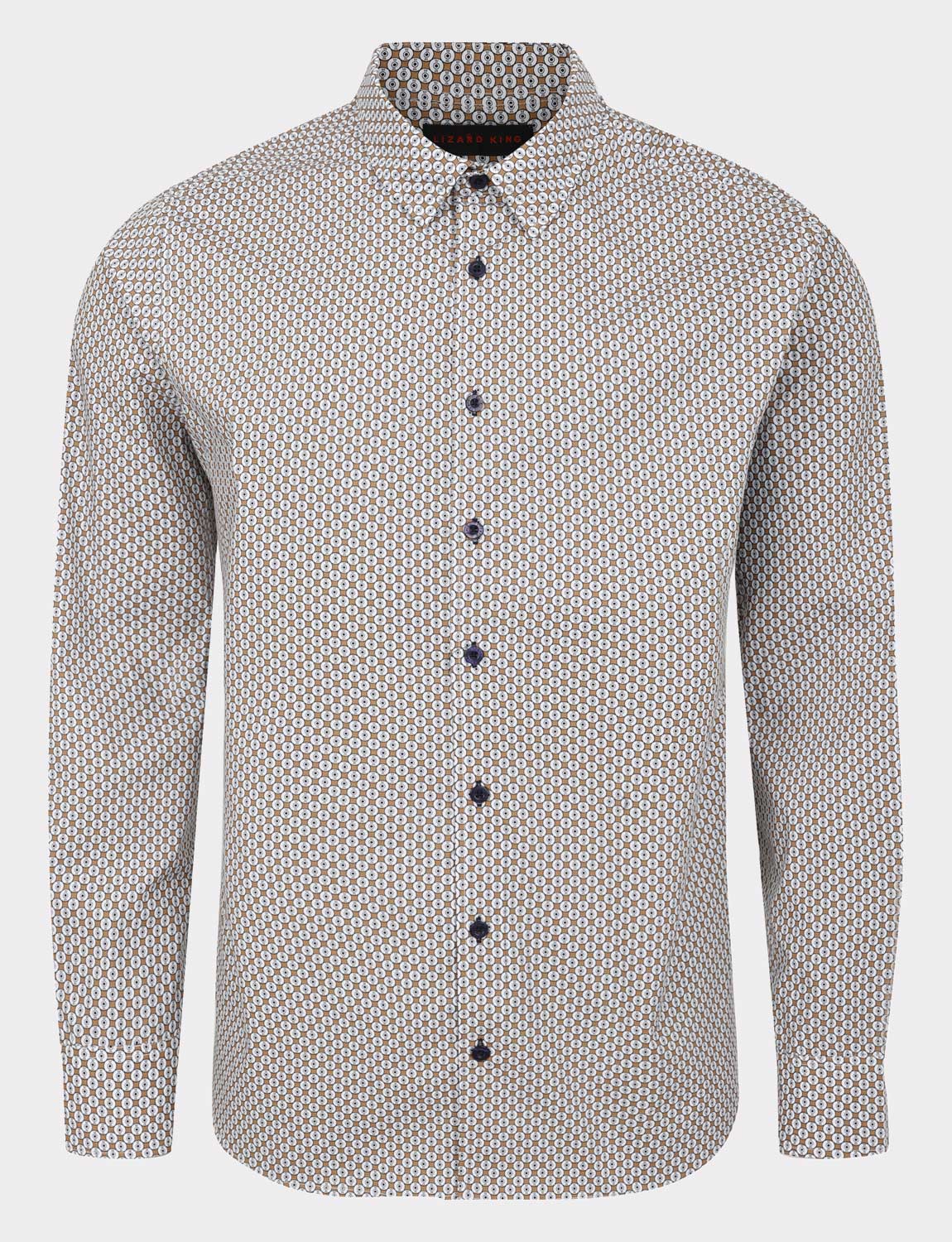 This Lizard King casual style shirt features a regular fit with a collared neck and long sleeves. Made from cotton and featuring a button closure.