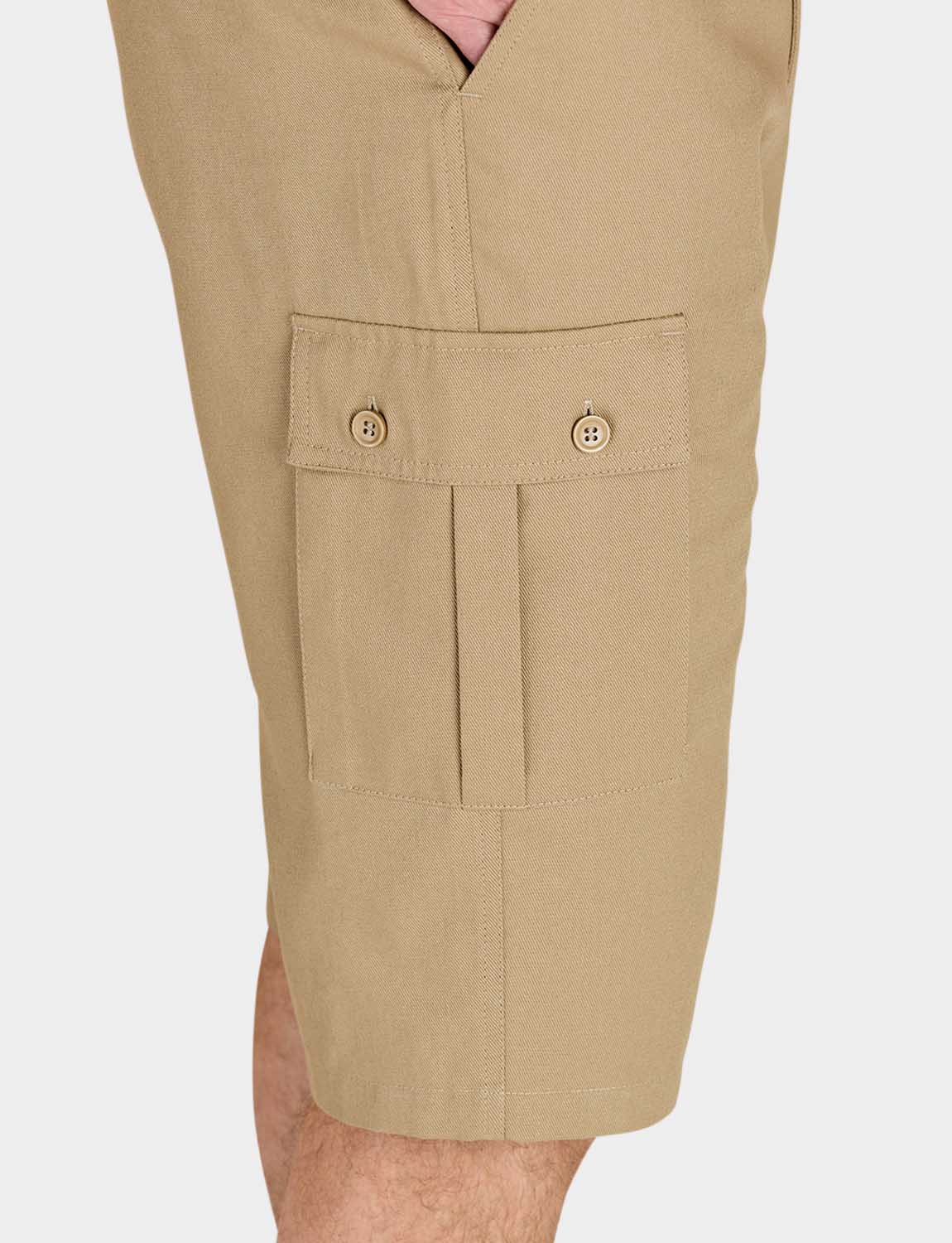 The soft 100% cotton fabric will feel good against your skin, and with discreet side elastication for a comfortable fit, you will want to wear the longer cargo short again and again. Each leg has a roomy button-down cargo pocket, and the shorts also feature two side pockets, offering plenty of space for your wallet, keys and other essentials.